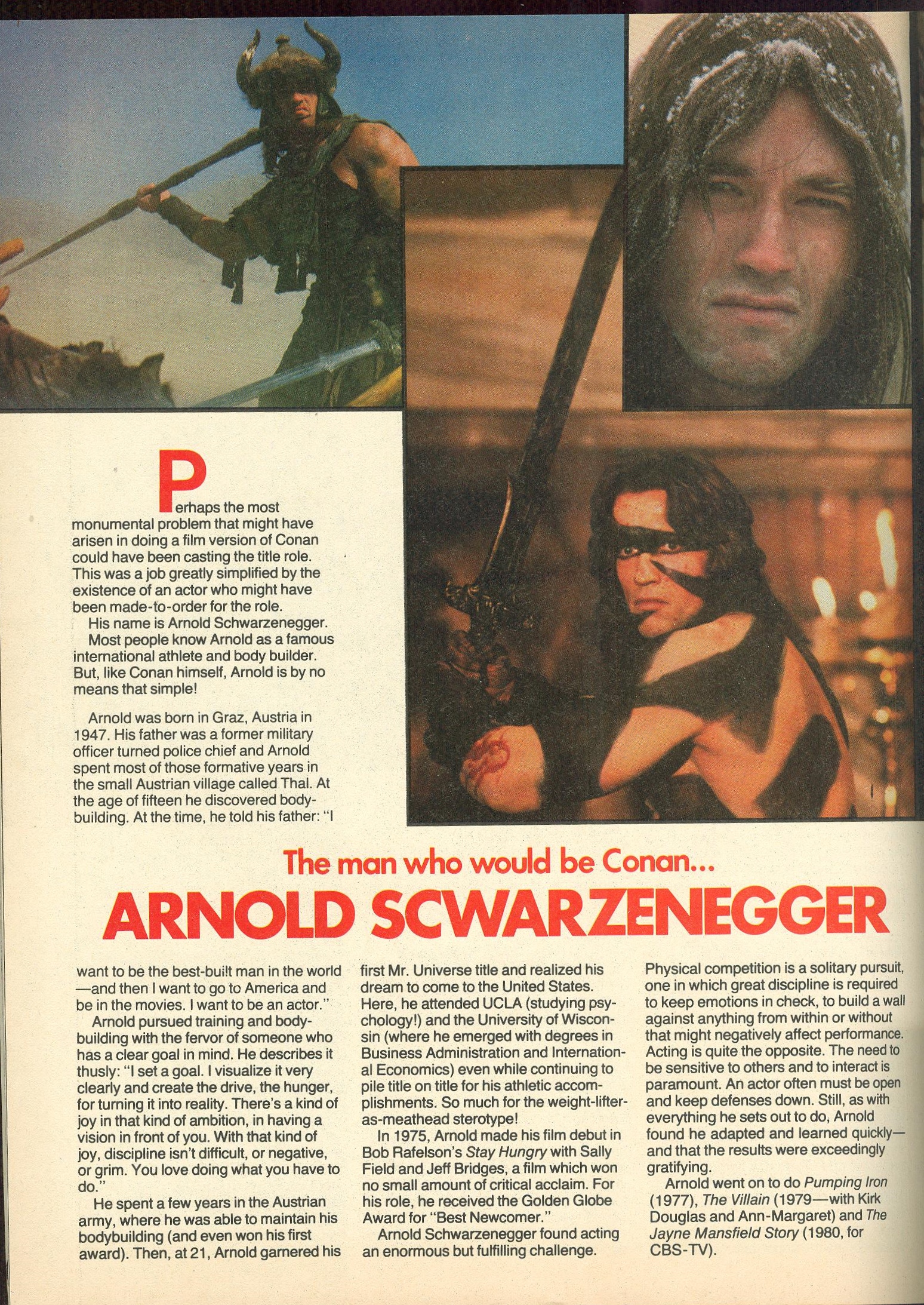 Movie photo of Arnold Schwarzenegger as Conan the “Gladiator”